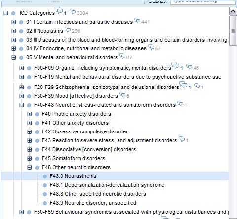 that in Chapter 5 (V) Details for F48.0 Neurasthenia