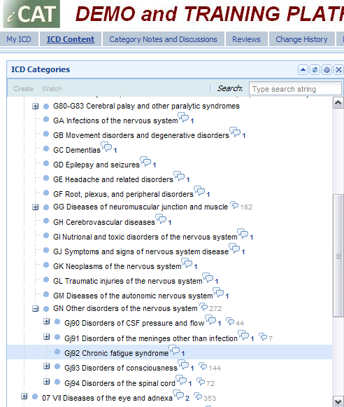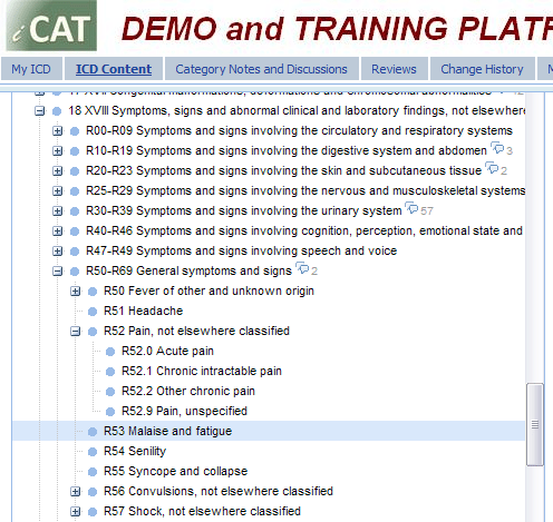 I noted that the Demo and Training iCAT Platform, at that point, was sparsely populated for content and that the classifications and codings listed within the various chapters appeared to have been imported from ICD-10, with little discernable change – presumably as the starting point for the drafting process.
