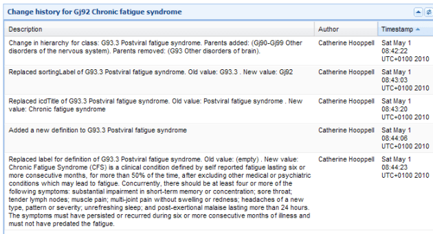 This is the “Change history” for Gj92 Chronic fatigue syndrome: