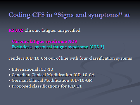 So the proposed coding of PVFS, (B) ME and CFS for ICD-10-CM is by no means a new issue.