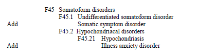[For reminder of deadline for objections to proposed insertion of Somatic symptom disorder into ICD-10-CM, skip to red subheading.]