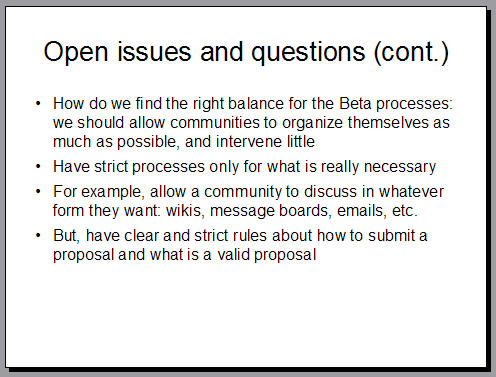 The meeting Agenda and PowerPoint slides suggest that ICD Revision is working towards making a version of the drafting platform publicly available around 16 May, this year, but that this may be a compromise on previous plans and possibly a “hybrid” between the Alpha and Beta drafting phases.