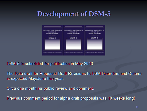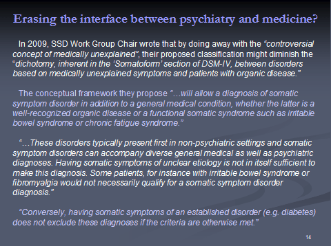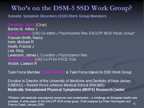 [4] The most recent proposals of the DSM-5 “Somatic Symptoms Disorders” Work Group plus two key Disorder Description and Rationale PDF documents can be read on the APA’s DSM-5 Development site: