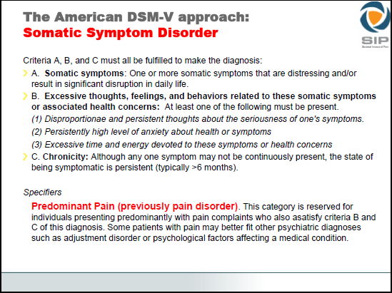 Many faces of somatic symptom disorders, International Review of Psychiatry February 2013