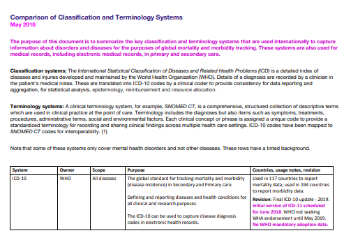 are classified in the World Health Organization’s international version of ICD-10 and how these terms have been classified for ICD-11.