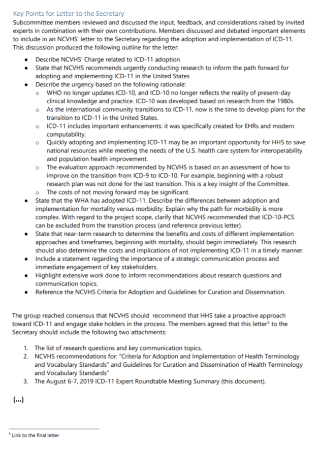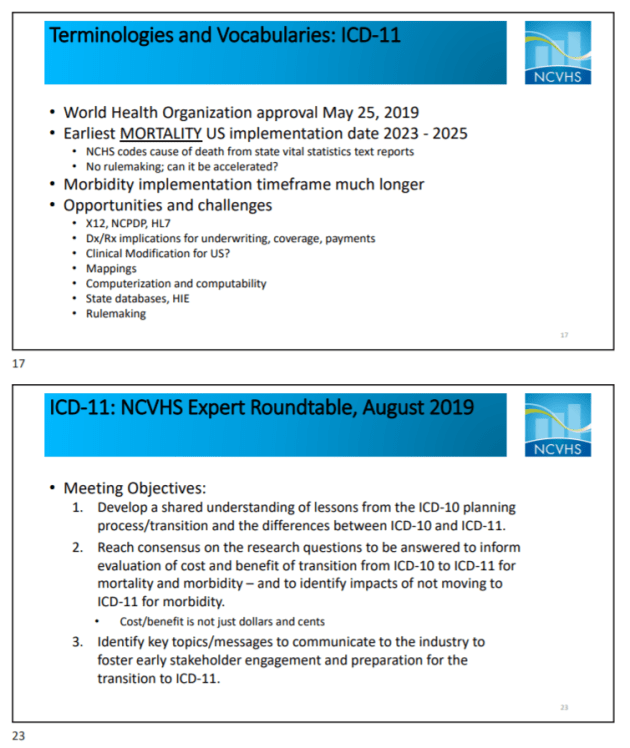 It would be premature to speculate when the U.S. might be ready to migrate to ICD-11 for mortality (cause of death reporting) and whether ICD-11 will be adequate as a morbidity classification system for U.S. use or whether NCHS will need to develop a clinical modification, as it did for ICD-10.