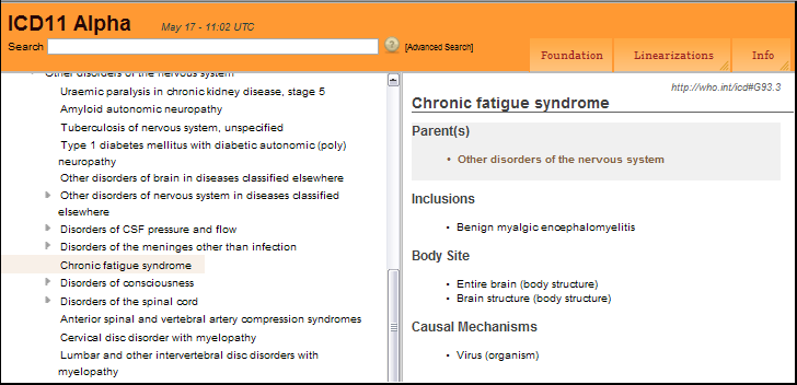 Part 2: Status of proposals for the classification of PVFS, BME, and CFS in the public version of the ICD-11 Beta drafting platform published September 30, 2014